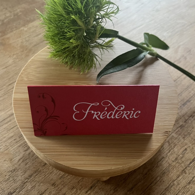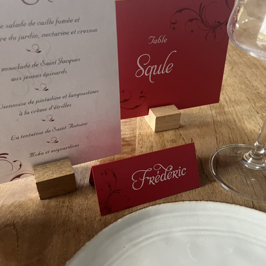 Il indiquera à vos invités leur place à table. La nominette se place classiquement au-dessus de l’assiette, à côté des verres.