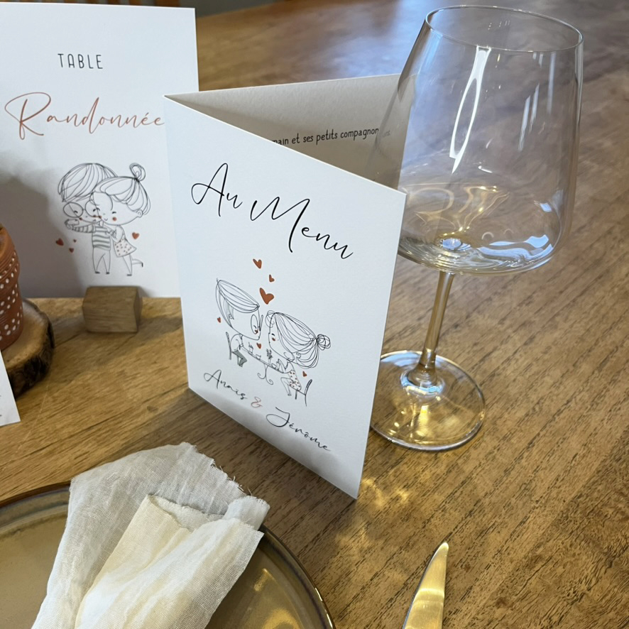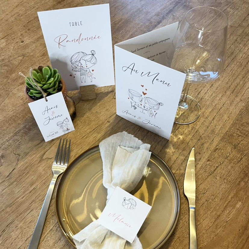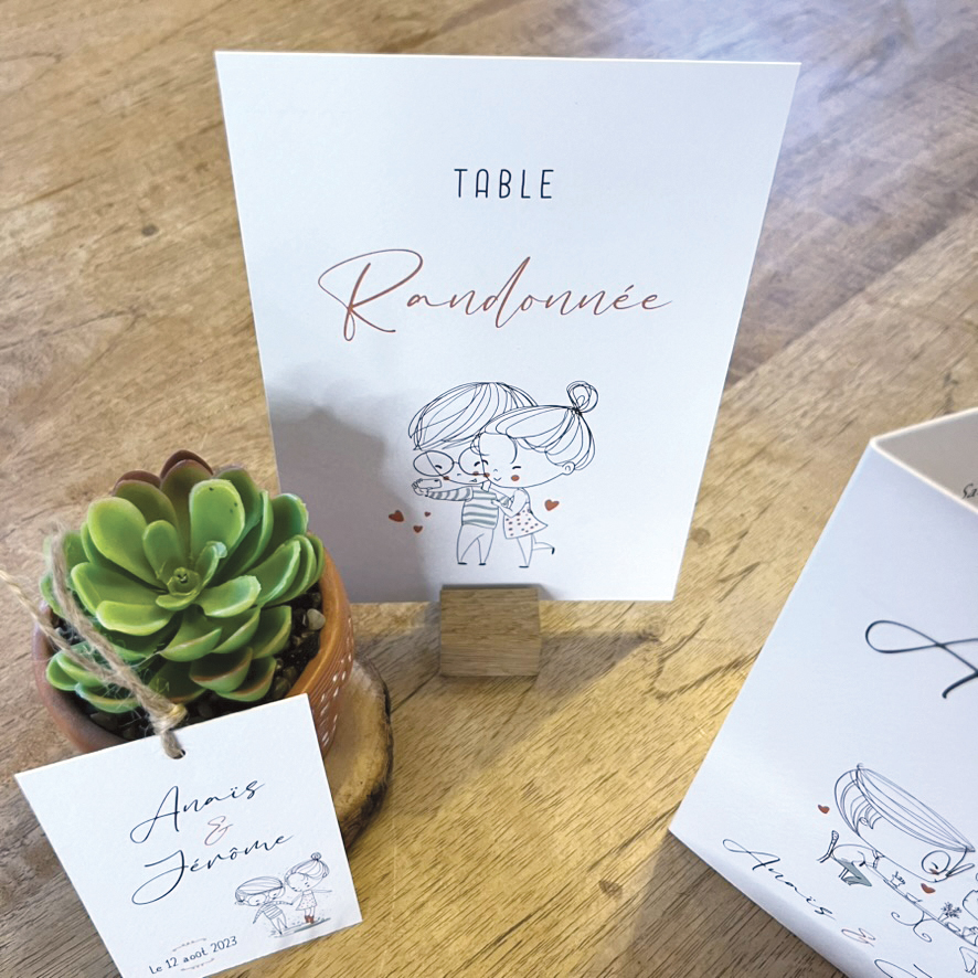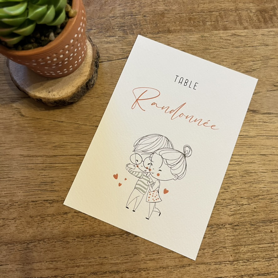 Le carton nom de table R°V° sera à déposer au centre de votre table de mariage sur un petit support ou un chevalet (non fourni) afin que vos invités retrouvent facilement leur table.